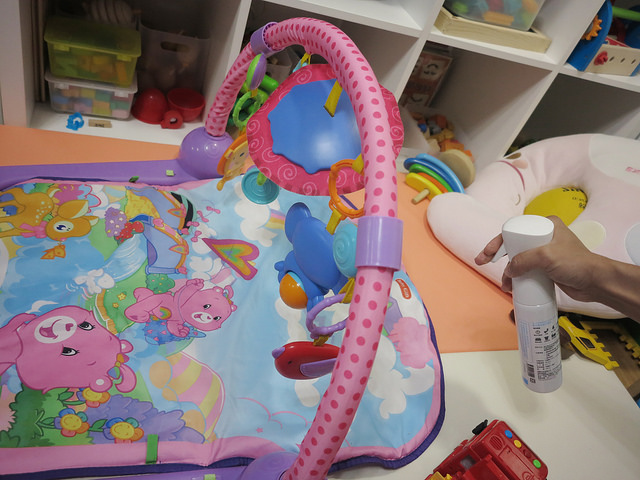 菌立解可以使用的範圍很廣,還可以拿來清潔廚房和浴廁,但我大部分都是拿來消毒孩子的遊戲區和睡床,因為這兩處是他們目前最常活動的範圍!