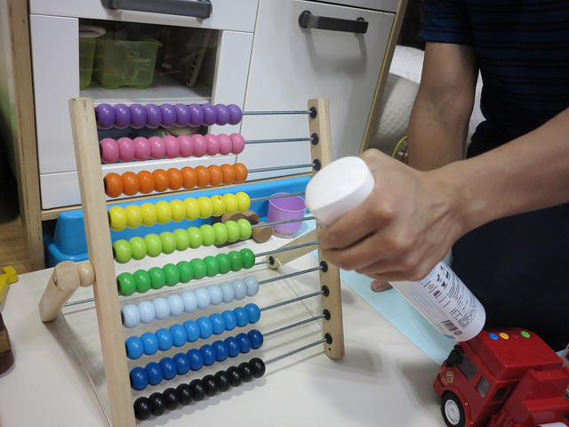 雖然用消毒藥劑無法百分百消滅細菌病毒,但對於目前正在學爬和把抓到的東西都塞進嘴裡咬的芒果妹妹來說,用消毒藥劑維持家中環境清潔還是有其必要性!