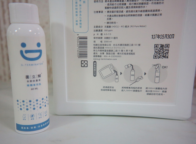 噴灑後沒有刺鼻的消毒藥劑味道,只有點淡淡的氯味,但很快就散掉沒味道了~
