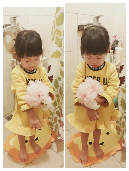 小北鼻時期我們都用澡盆,到兩歲過後我們就讓妮妮學習站著洗澡