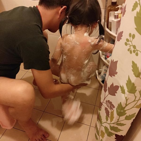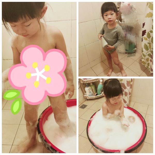 洗澡時間是他們父女專屬的玩耍時間,不誇張沒半小時也有20分鐘每天