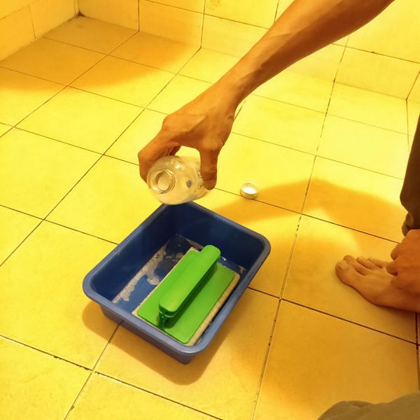 1.施作前1-2天避免使用沐浴乳或洗髮精...等等會滑的清潔劑刷洗地面