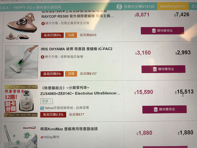 像最近我在找塵蠻吸塵器,在購有錢很方便好用的就是會直接幫你排序,