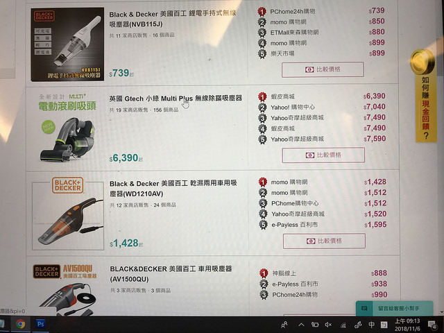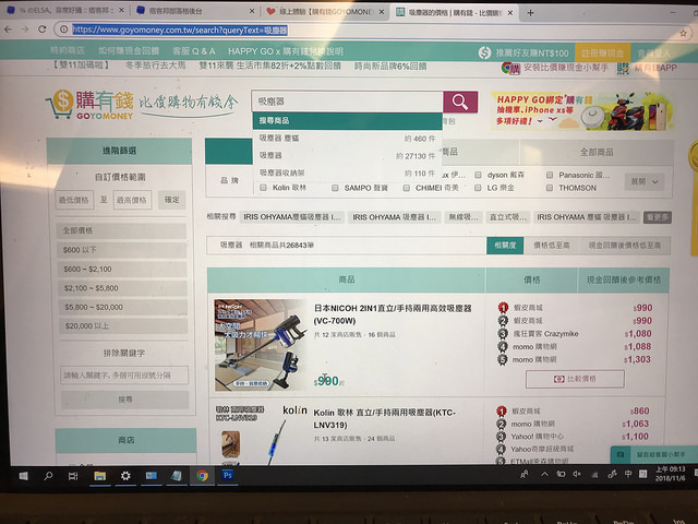 像我只要輸入關鍵字[吸塵器 塵蠻] 你就會看到,有品牌選擇、商品的價格排序。