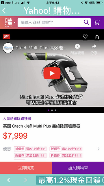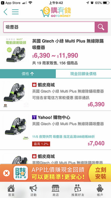 一下子就可以看到不同的價格區間作比較,因為我已經鎖定了GTECH英國小綠吸塵器,所以直接點了在右下方的灰色框框。