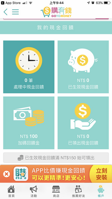 3.領出現金,(回饋的現金滿$150就可以把錢領出來)