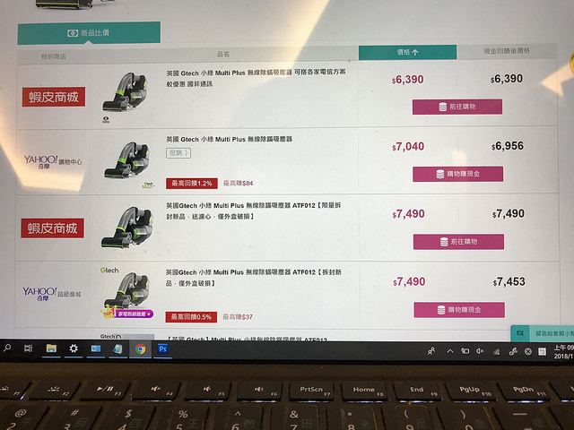 每款吸塵器的價格通通當你列出來,像我喜歡的gtech小綠吸塵器從蝦皮商城$6390-7590都有,
