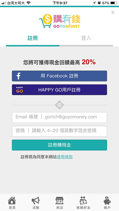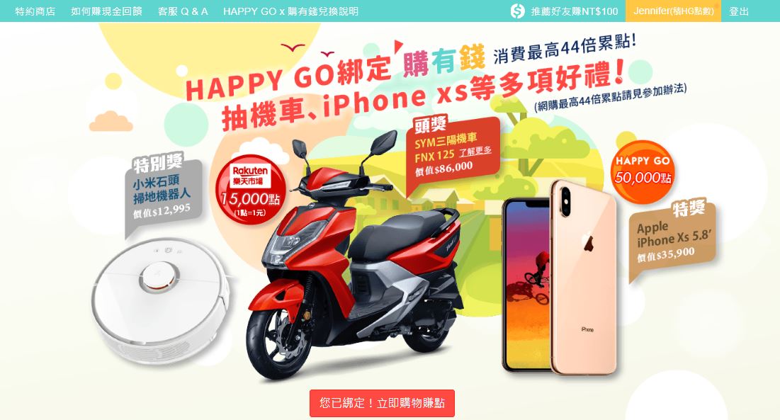 當然註冊好購有錢帳號後,記得去綁定happygo,可以多賺66點,等同於30元的現金回饋呢!