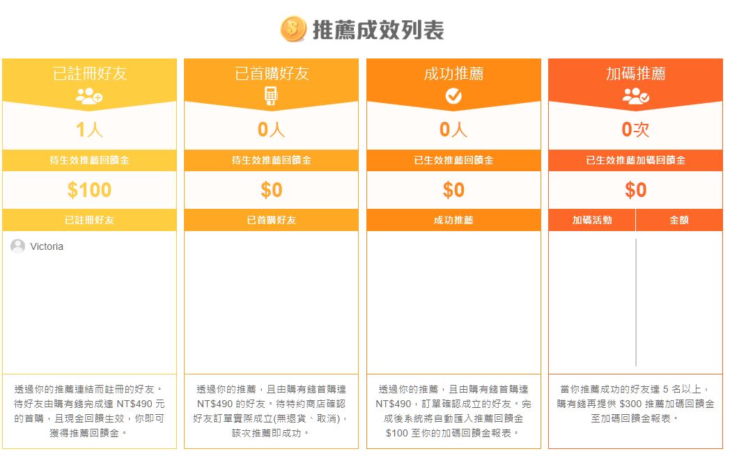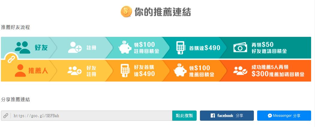 如果朋友因為你的推薦註冊了購有錢,後來又在第一次購物時候消費滿490元,恭喜你又要拿50元了!話說到這邊,是否快快來註冊好 :lol: