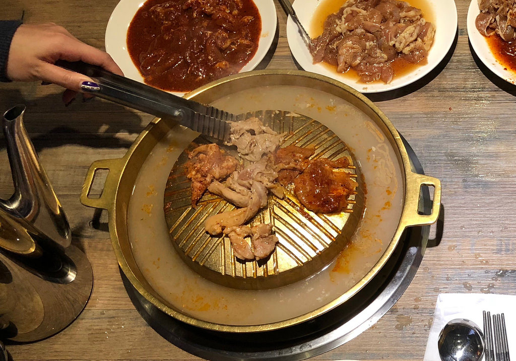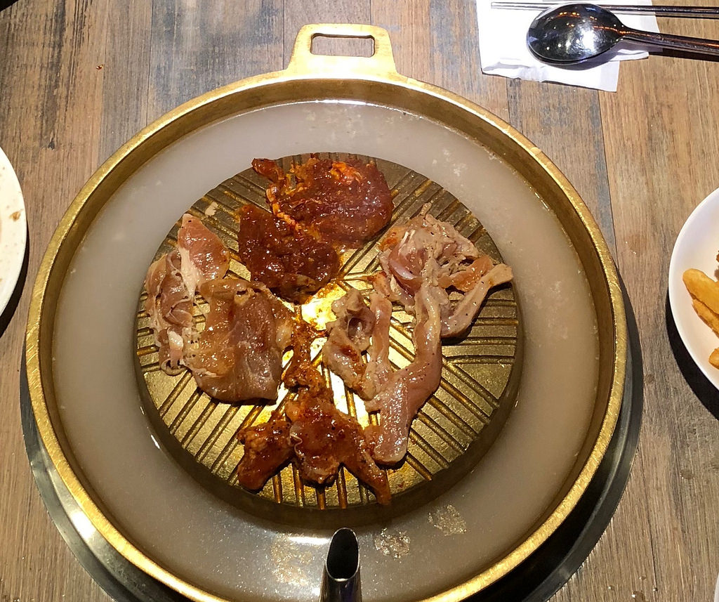 在夾肉時如果發現湯汁太多,肉品旁邊有個可以倒汁的地方,這樣烤起來也會較好吃些