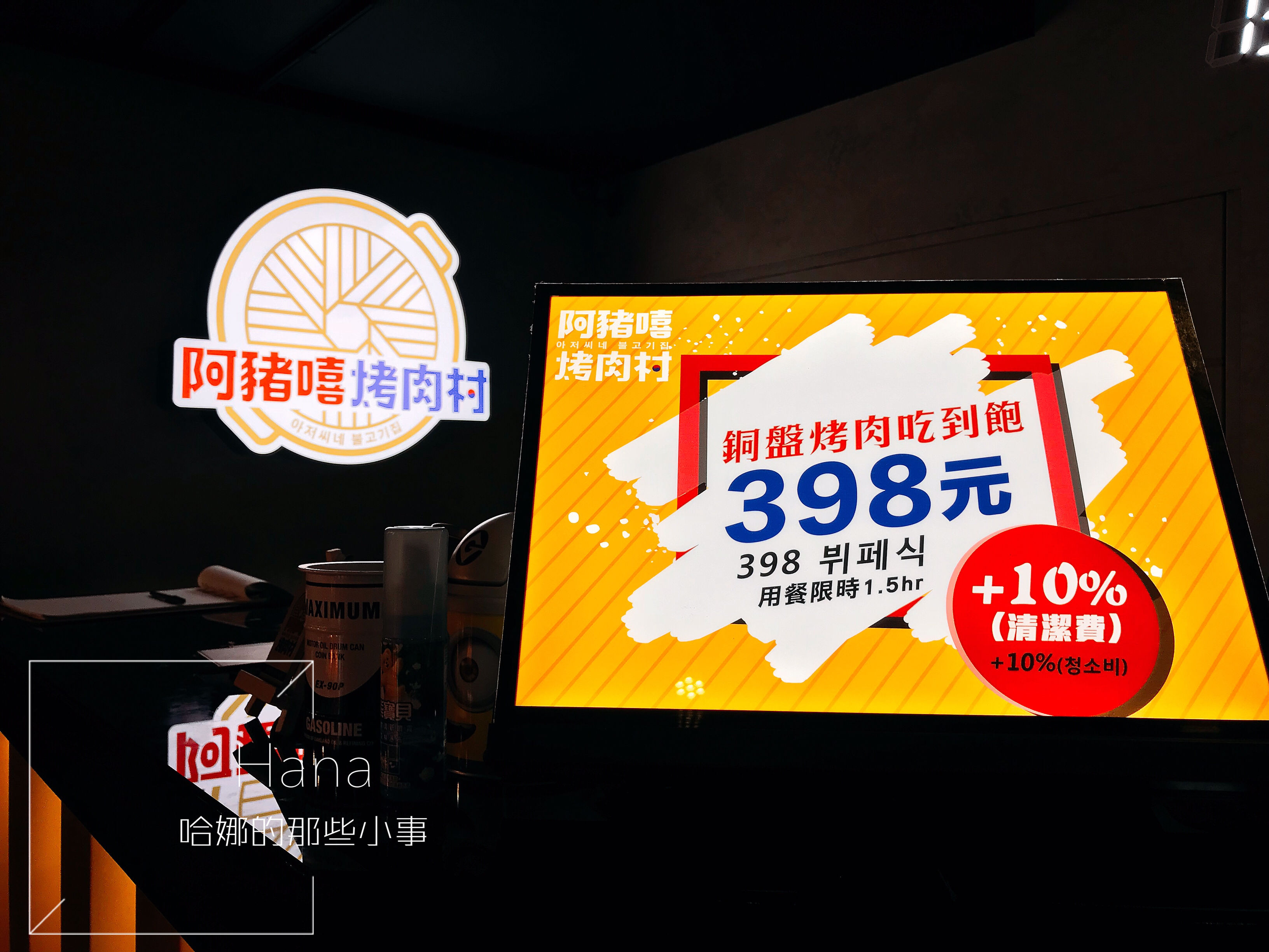 阿豬嘻烤肉村的消費方式是每人398加一成,