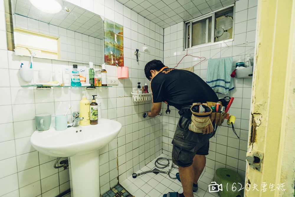 師傅終於來幫我改造家裡了!! 你看我們家浴室的門~旁邊都裂了~就知道房子真的有年紀了~