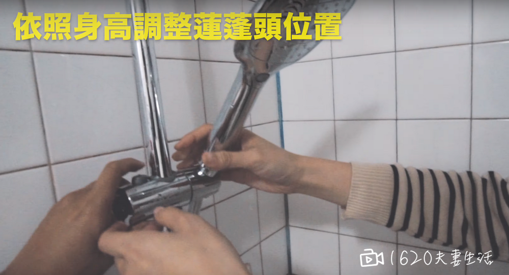 4.它的蓮蓬頭位置是可以調整的,可以依照你的身高微調,再也不會洗不到背了!!
