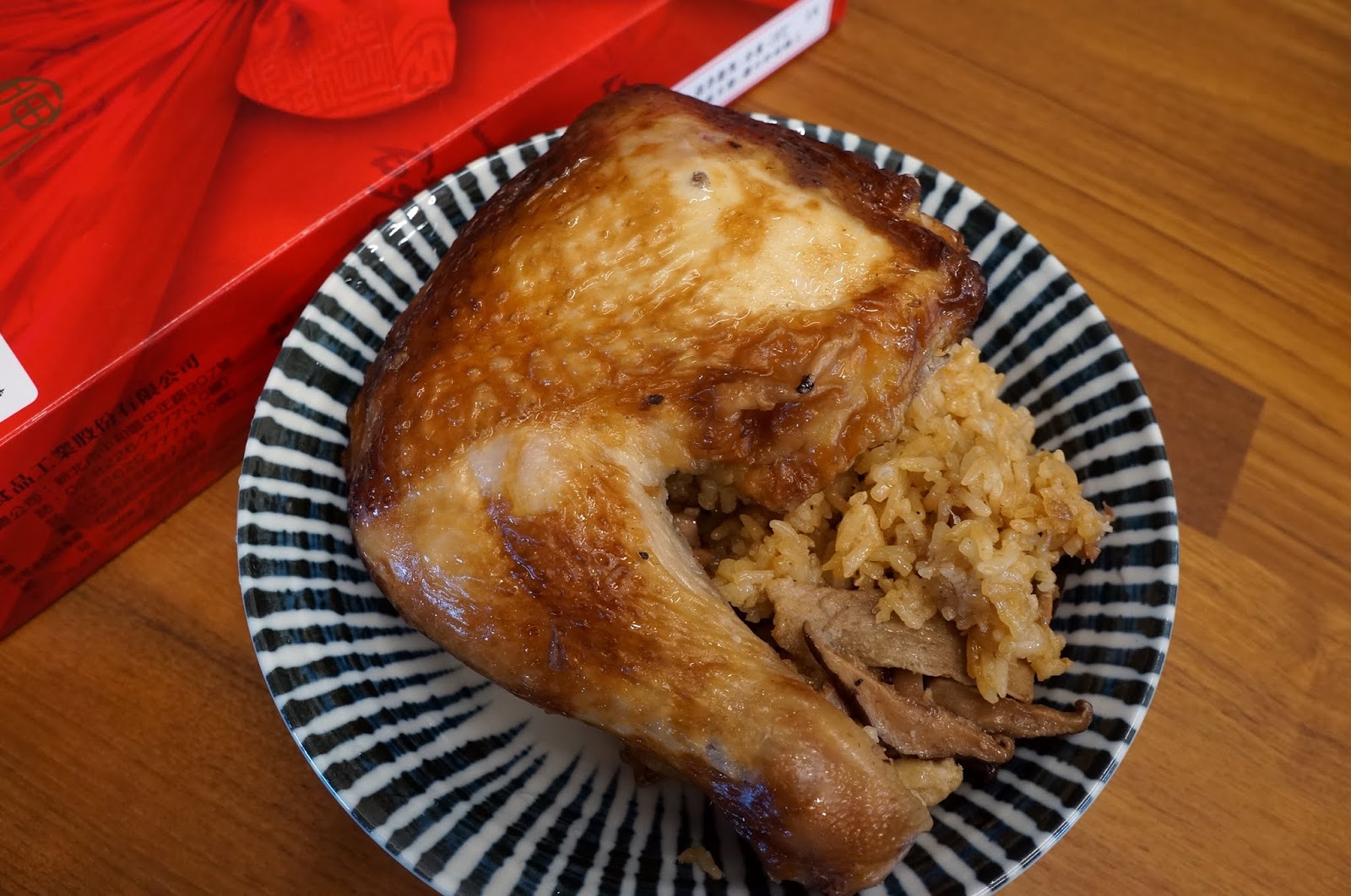 解凍完的油飯,看起來比較正常了!這個雞腿好大隻呀
