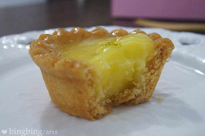 檸檬味道吃在嘴裡酸甜酸甜的,和塔皮搭配在一起,很容易就讓人一口接著一口吃完