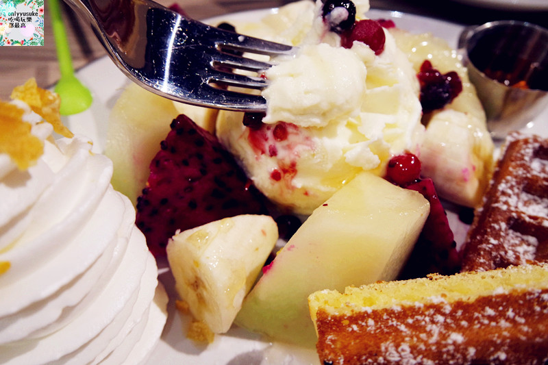 ♡餐後一定要再來一份繽紛水果冰淇淋鬆餅畫下美麗句點。