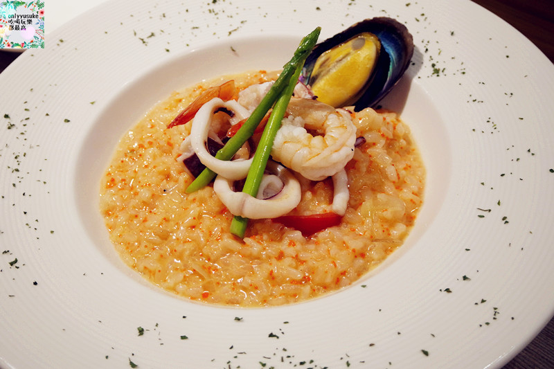 ♡芬達哥點的主餐則是燉飯系列的明太子海鮮燉飯,是說我們倆到底是有多愛明太子XD。