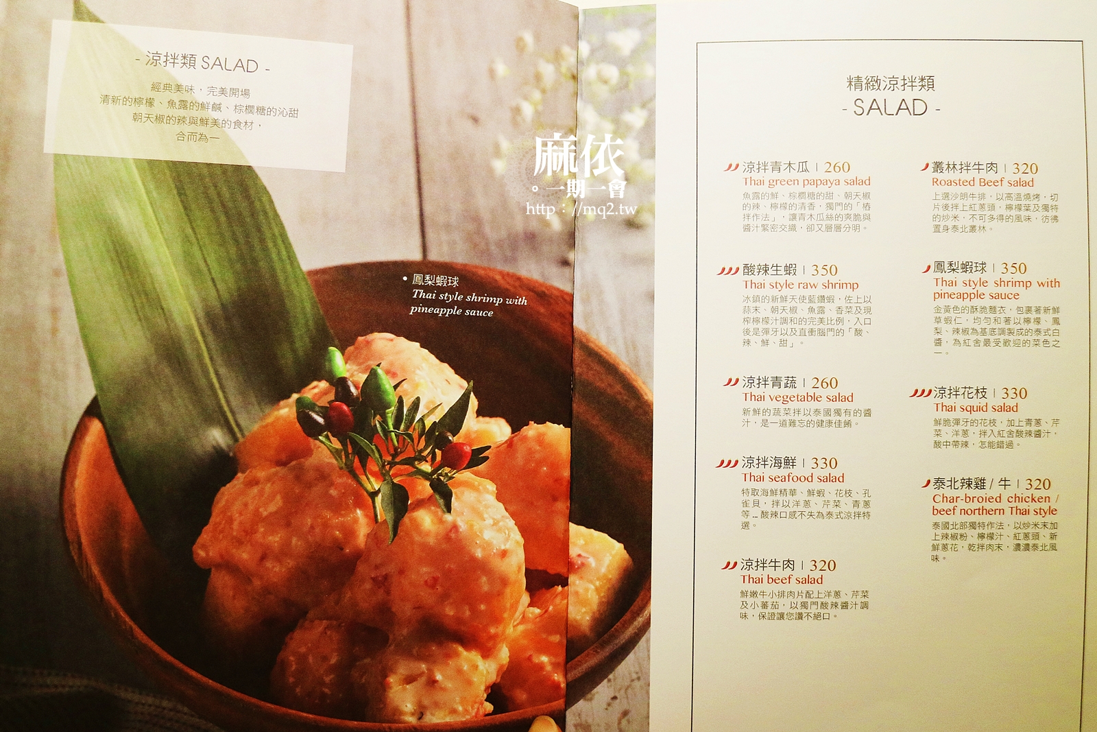 紅舍泰式料理 菜單(手機版朋友可拉近放大觀看唷)