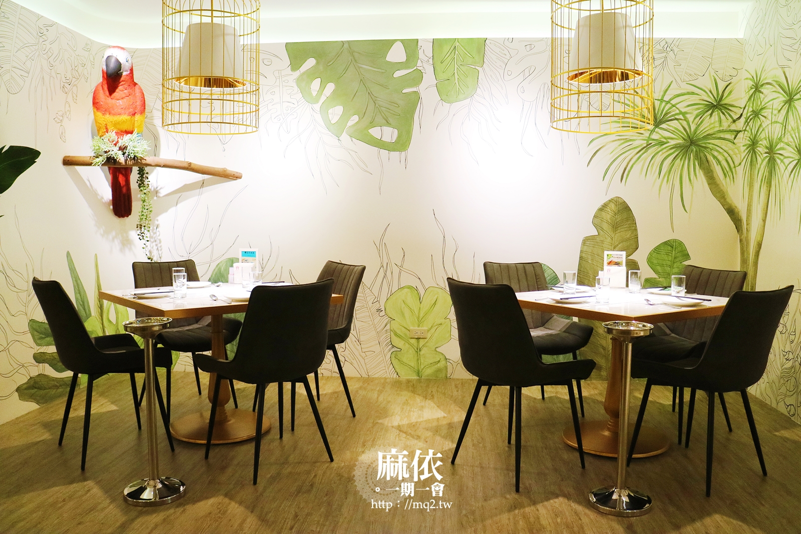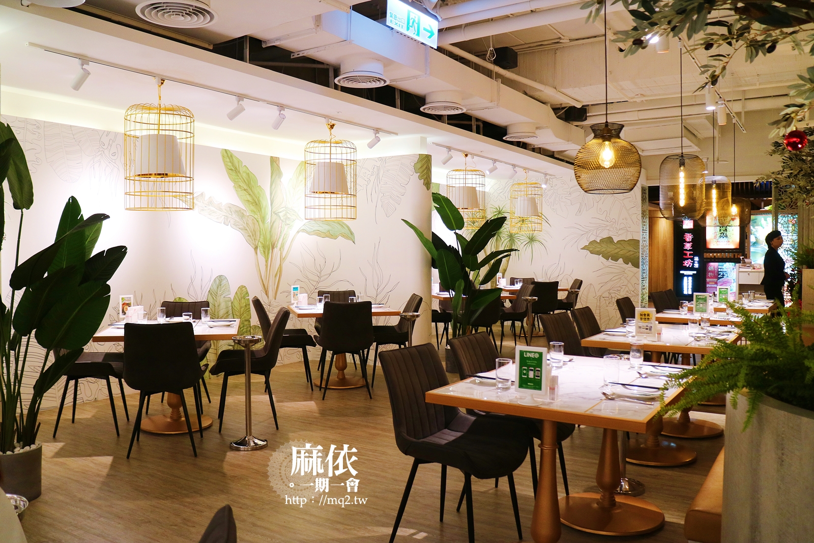 餐廳的外觀使用了不少綠色植物,當下一看覺得很有南國風情欸,加上白色的簍空牆欄,給人一種典雅的氣息。