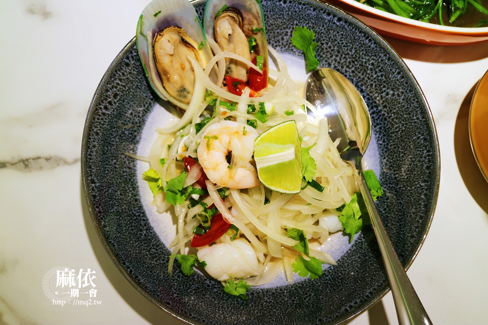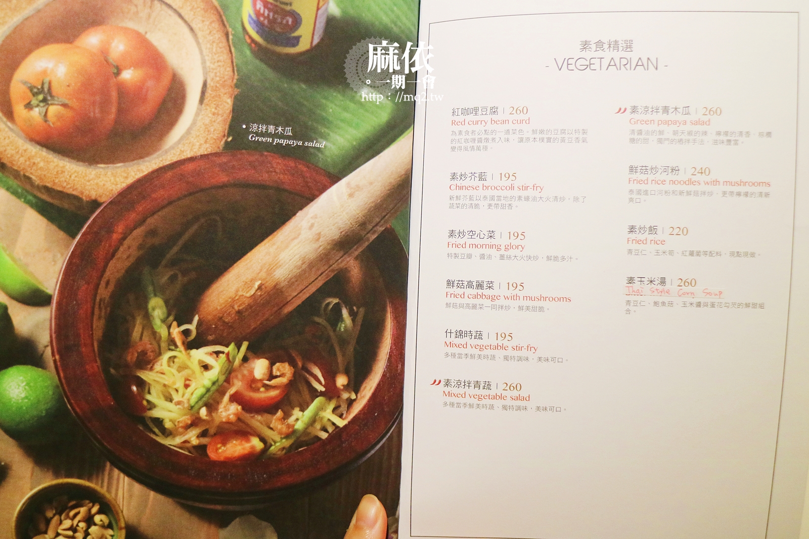 特別是洋蔥、小番茄、青蔥和海鮮在泰式醬料的攪拌下,酸、辣、甜混在一起,真的很棒,我自己每次吃泰式料理是必點一道涼拌類,不喜歡吃海鮮的朋友,也可考慮涼拌青木瓜!