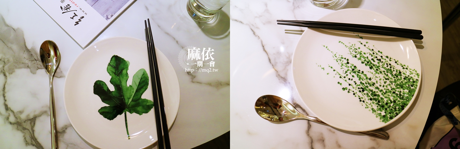 我的是葉子(左圖)、里奈的則是藤蔓(右圖),吃個飯心情都被療癒了,連細節都如此用心,像我就是很容易被這種小細節給打動。(決定要來淘寶找這種餐盤哈哈哈)