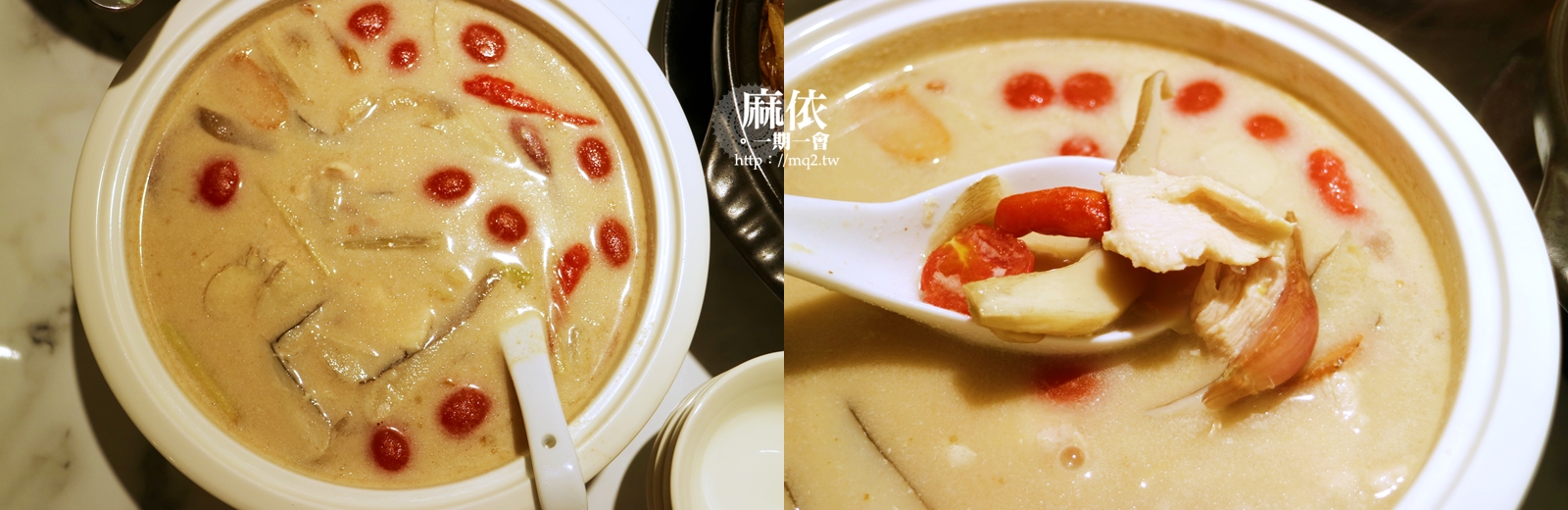 喝起來的味道是很道地的南國風,因為有著檸檬葉的香氣、還有南薑沉穩深厚的味道、全部和在一起酸酸甜甜的滋味令人一喝難忘、印象超級深刻xddd,在我們家評價兩極、我個人超愛;里奈因為不喜歡椰奶所以這道她投降哈哈哈。