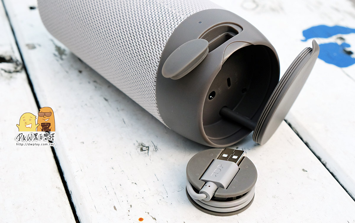 最讓人感到貼心的地方是ZERO CHILL藍芽喇叭最下方備有可收納式充電線