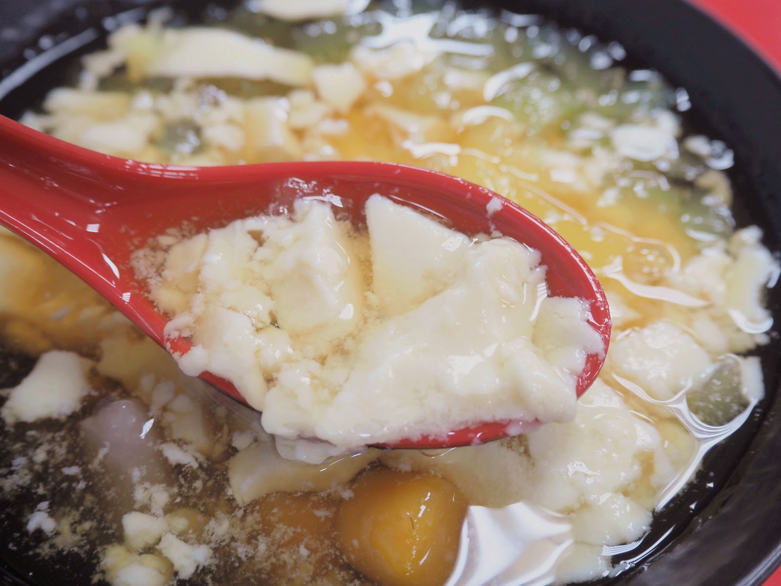 他們的豆花很特別是比較碎的那種~像碎豆花一樣~