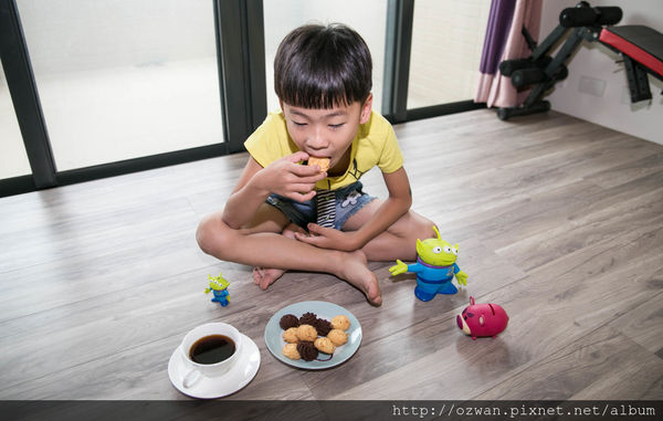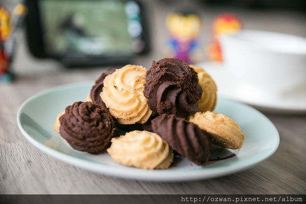 巧克力曲奇餅乾,除上述材料外,融合中濃度純可可,形成微苦甜的口感,不甜膩,餘韻回甘。