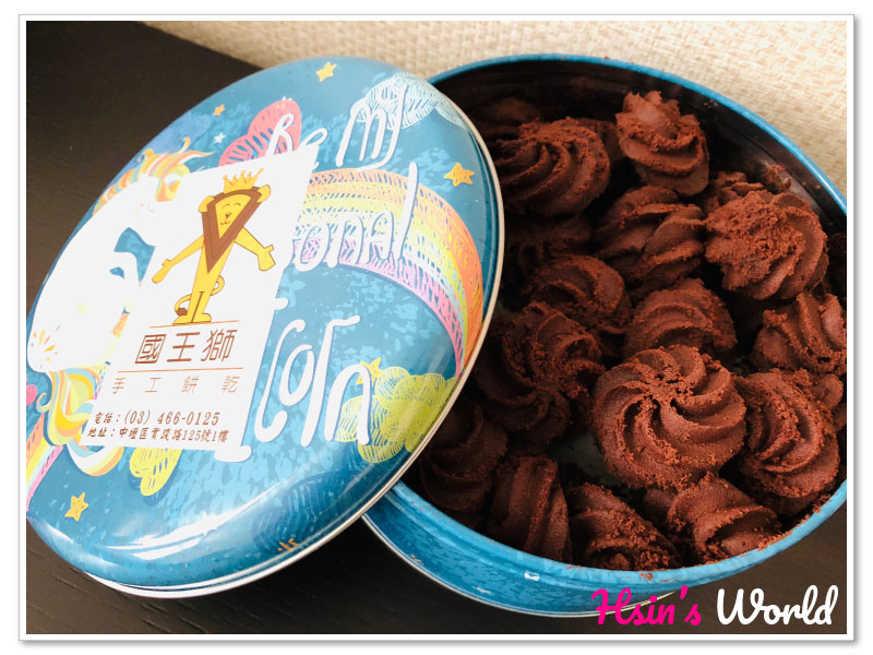 國王獅手工餅乾位於桃園中壢,中原大學的附近,製作食材都是精心挑選過,採用嚴選法國進口奶油、高純度可可粉,每日堅持手工現做現賣,搭配上童趣的彩繪鐵盒,很適合當作禮物,尤其最近聖誕節要到了,挑選給朋友當聖誕禮物真的是再適合不過了。