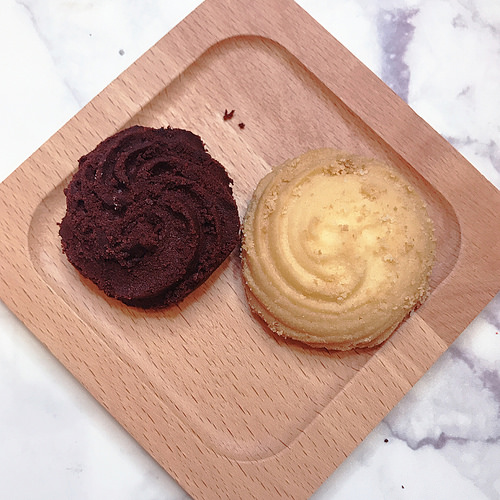 他的餅乾可以看到兩種口味的形狀是不太一樣的~