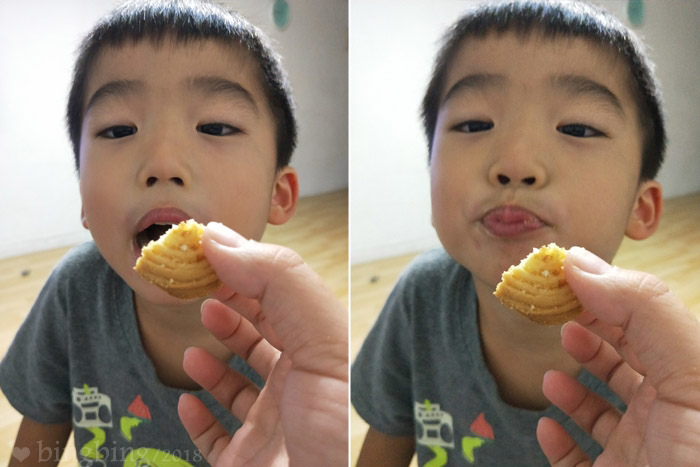 不過他們倆兄弟都吃了兩口後,就把餅乾塞給我,覺得太苦 (對他們來說)