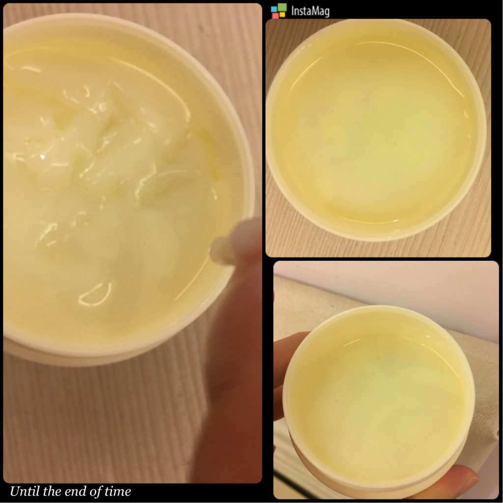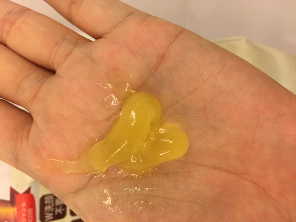 觸感是稍微濃稠的凝膠狀, 顏色是透琥珀黃