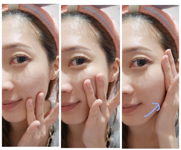 最後再用手掌輕拍及輕敷臉頰