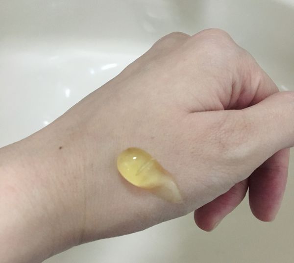 凝膠擠出來跟外包裝化的柚子顏色一樣是淡淡的半透明柚子色