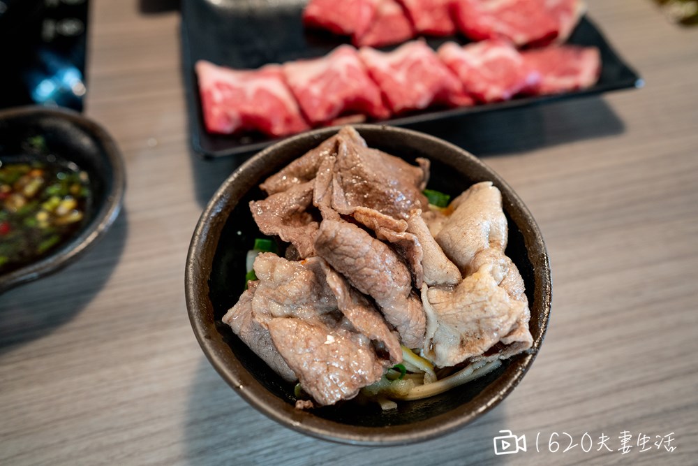 這兩盤肉平分秋色不分上下,但不知道為什麼~我甚至一度覺得豬肉比牛肉好吃~
