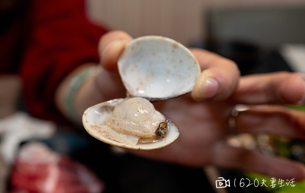 等待蝦子熟的過程,蛤犡已經開了~顆顆飽滿~一開就要撈起來~32秒是最剛好的熟度~