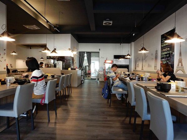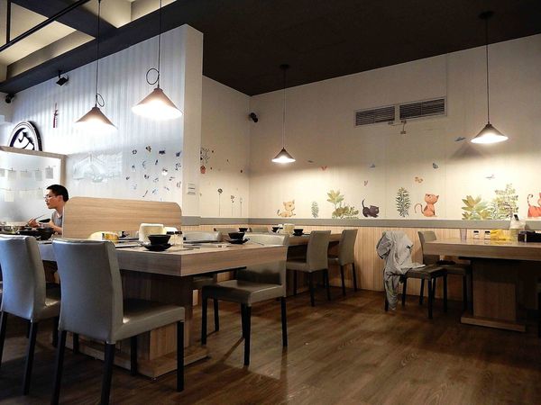 店內算是滿方正的 ,大小就是一般火鍋店的大小 ,牆上貼著貓咪與巴黎鐵塔的壁紙