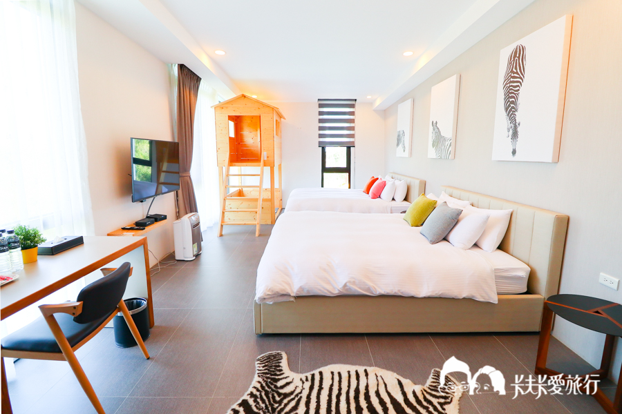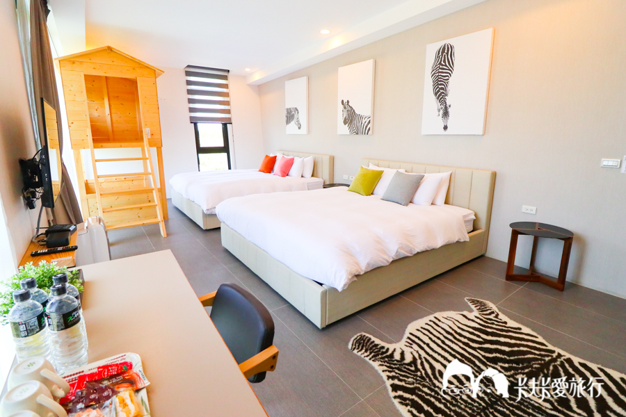 卡夫卡最喜歡這間斑馬的房型,這間的特色是擁有四人的房型,加上一個樹屋