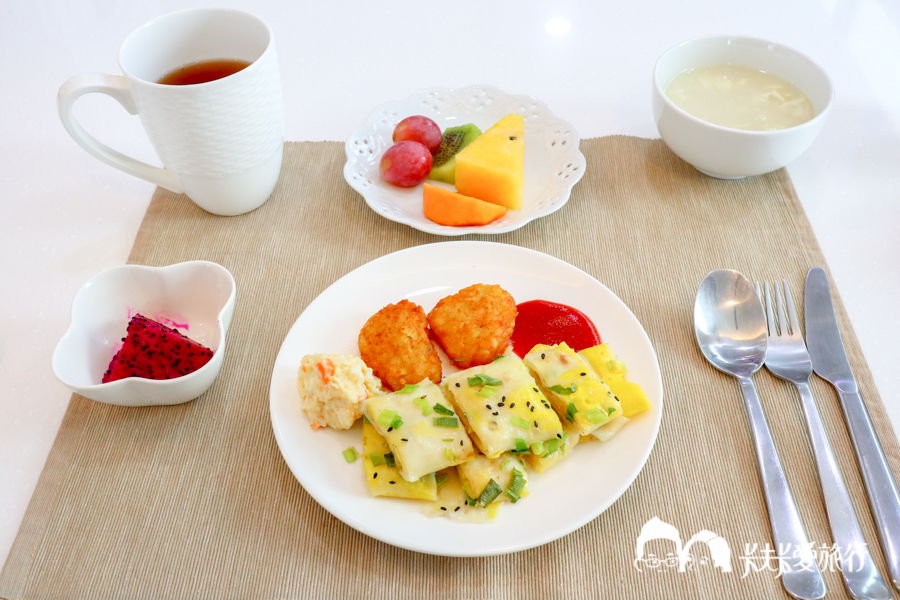 今天的兒童餐點是小蛋餅與薯餅,如果需要點醬油可以跟管家拿喔