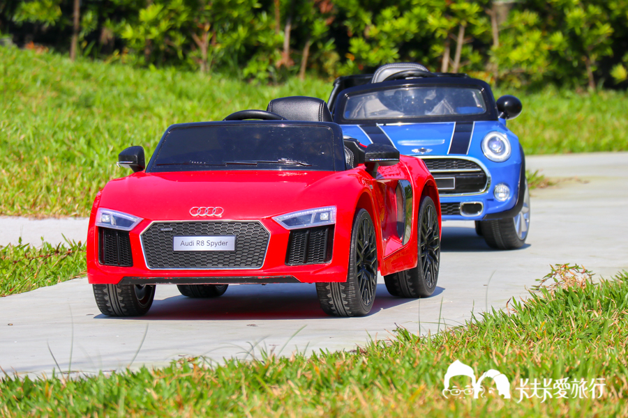 出發囉!開著Audi R8和Mini cooper來悠悅光賽道盡情奔馳,其實孩子們可能不大會開,因此爸媽一定要在旁陪同喔