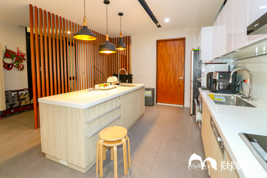 廚房空間,餐具杯子一應俱全可以自取,至於烹調部分僅提供包棟使用