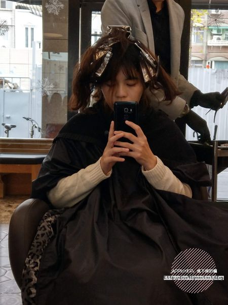 在等待的過程中也一直會來檢查頭髮上色的程度
