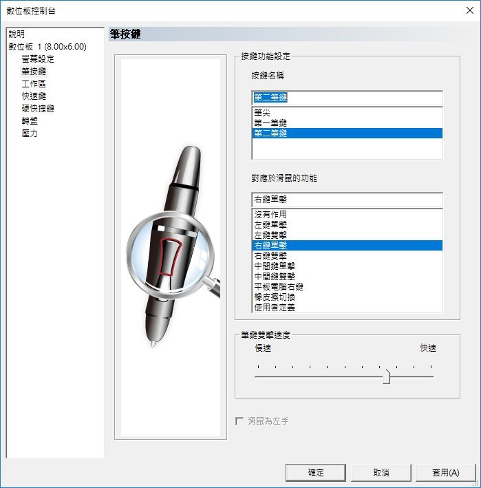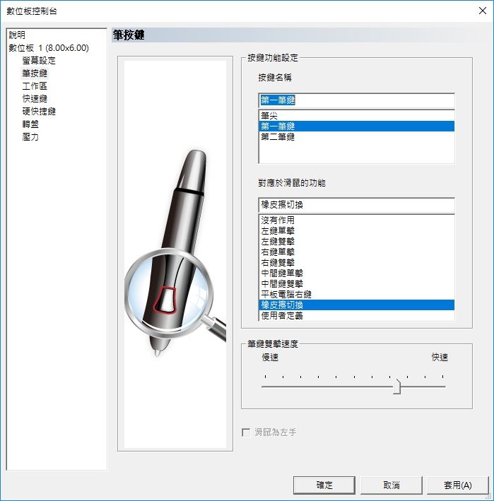 筆上/下按鍵:可設定復原移動紙張或橡皮擦切換等指令。