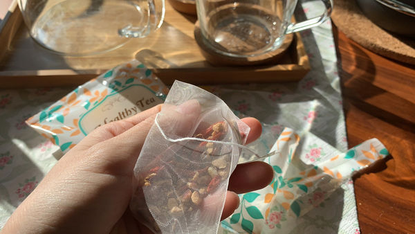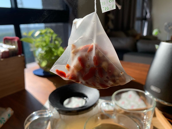 因為材料沒有散落杯子裡 清潔也好方便 超級適合我這種忙碌上班族,丟一個茶包下去,加入熱水養氣茶就好啦!