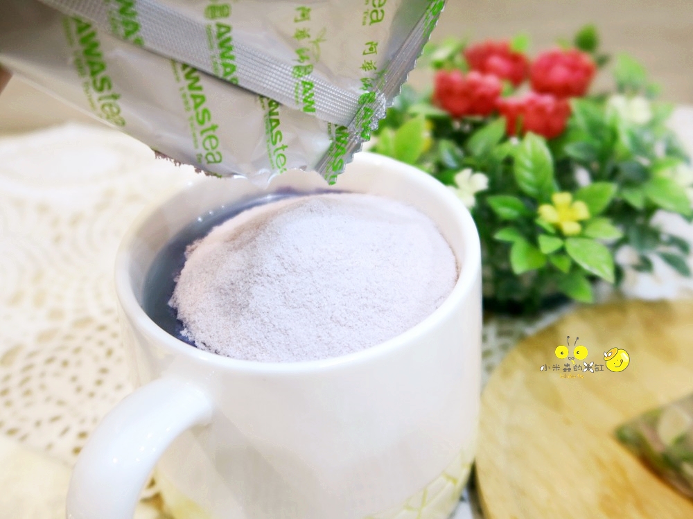將玫瑰花茶包浸泡了三分鐘後,將特調奶包倒入杯裡攪拌,在攪拌的過程中,會發現茶湯呈現紫色的樣貌,其實這是因為奶包裡面有添加玫瑰花粉,而玫瑰花粉本身就含有青花素,與熱水結合就會產生紫色的茶湯,這是正常的現象喔!!所以不用擔心裡面是不是有什麼化學物或色素啦!