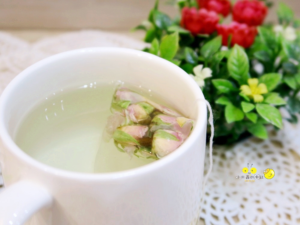 在三角立體茶包的玫瑰花,一株株含苞待放似的,選用進口玫瑰花苞粒,無農藥殘留,浸泡在水中,就見它溫柔的舒展開。
