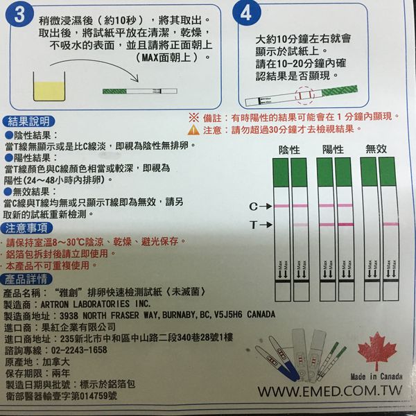 『加拿大Artron雅創排卵試紙』, 可以很方便又快速知道自己有沒有排卵