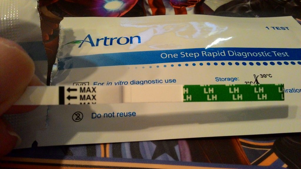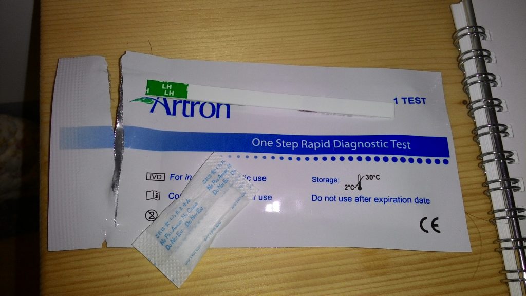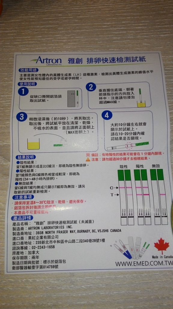 以尿液測試,將試紙放入尿液中,一下子試紙就吸收了尿液進行檢測,呈現陰性結果為右邊的T線比C線淡,代表陰性無排卵,若兩條線顏色深,代表24-48小時排卵,Ivy覺得這試紙好特別,簡易的流程和步驟,好像驗孕棒XD,對於想要生育的女性來說不啻為一大福音,因為女生一個月排一次卵,需把握黃金的排卵時程,不像男生,非常珍貴無比啊!錯過了要等下月,況且很多人都是無排卵性月經><