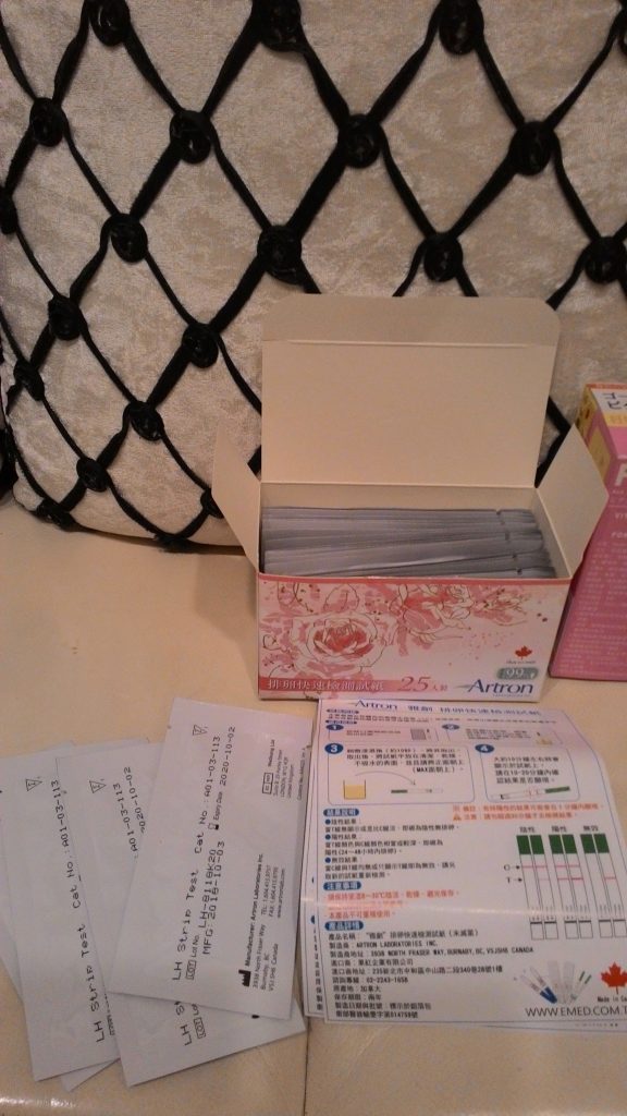 排卵試紙+備孕維他命,算準生理期後的黃金排卵期,來測試一下是否真的有排卵,因為女生適逢排卵期不見得就有排卵喔!有些月經不正常的女生,排卵功能不穩定,多是沒有排卵而致濾泡期過長,子宮內膜只有增生變化,當雌激素下降到一定水平時,會造成子宮內膜的脫落,出現月經,即無排卵性月經。(摘自維基百科),這時若想要有baby的夫妻,可以透過排卵試紙知道有無排卵。
